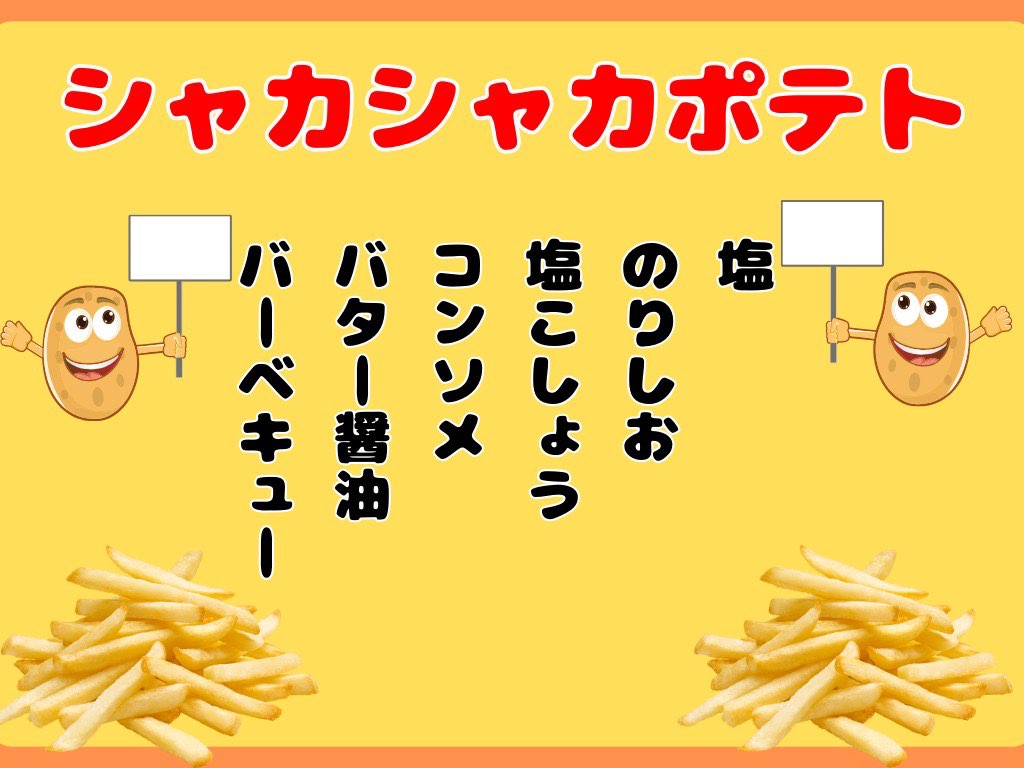ポテト、かき氷、削りいちご