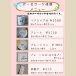 ポーセラーツ食器、雑貨のお店です。 ポーセラーツでは、好きな絵柄の転写紙(シールの様なもの)を選んで、お皿やマグカップをデザインできます。 簡単なので、お子さまからご年配の方までお楽しみいただけます!