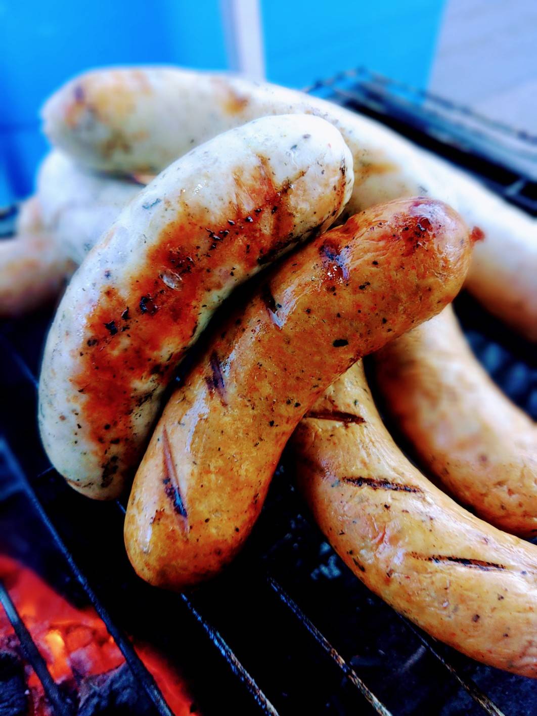 自家製ソーセージをスモークし、炭火で焼き上げます。