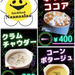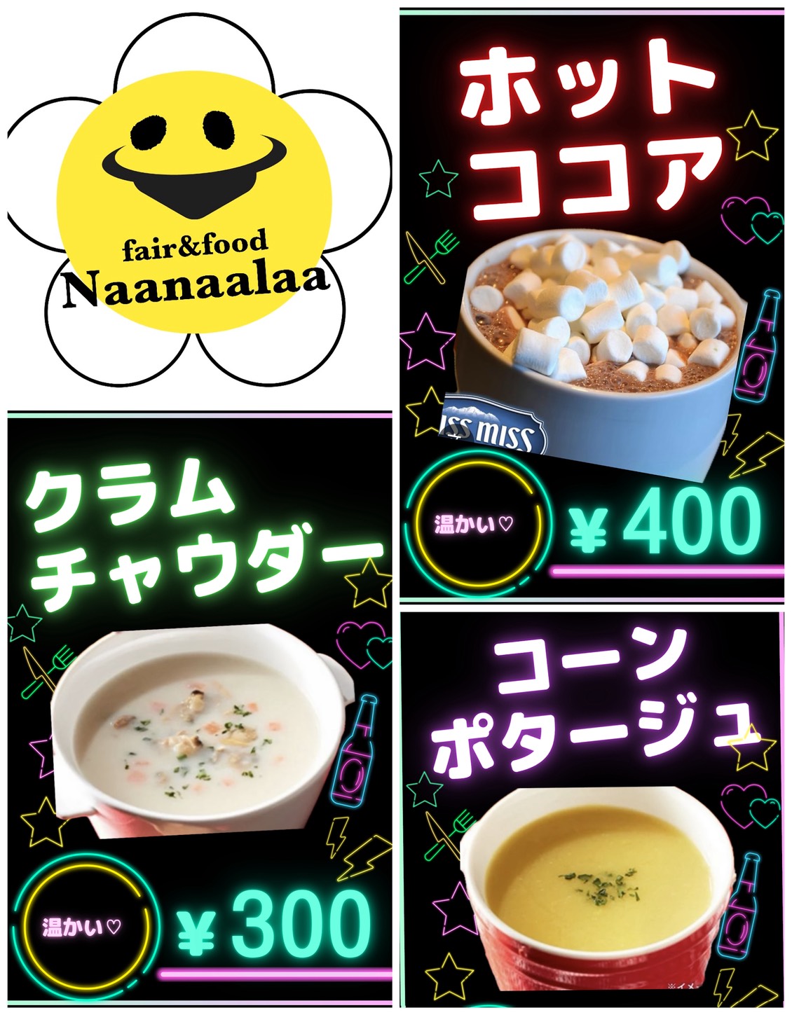 モチモチ生地とフランクフルトが一体化した揚げたて美味しいじゃがもちフランクやこだわりの焼きそば、温かいスープなど販売致します!