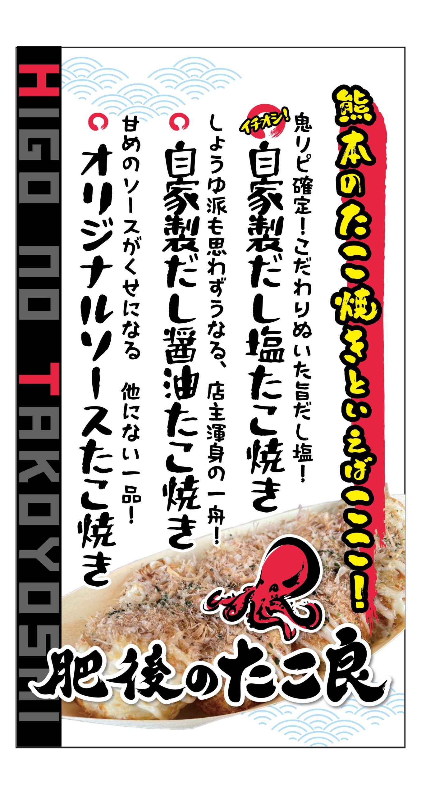 八代市鏡町、県道沿いにあるたこやきやさんです◎店主自慢の自家製ソースと自家製だし塩とたこ焼きの粉は本場大阪から取り寄せてこだわってます★