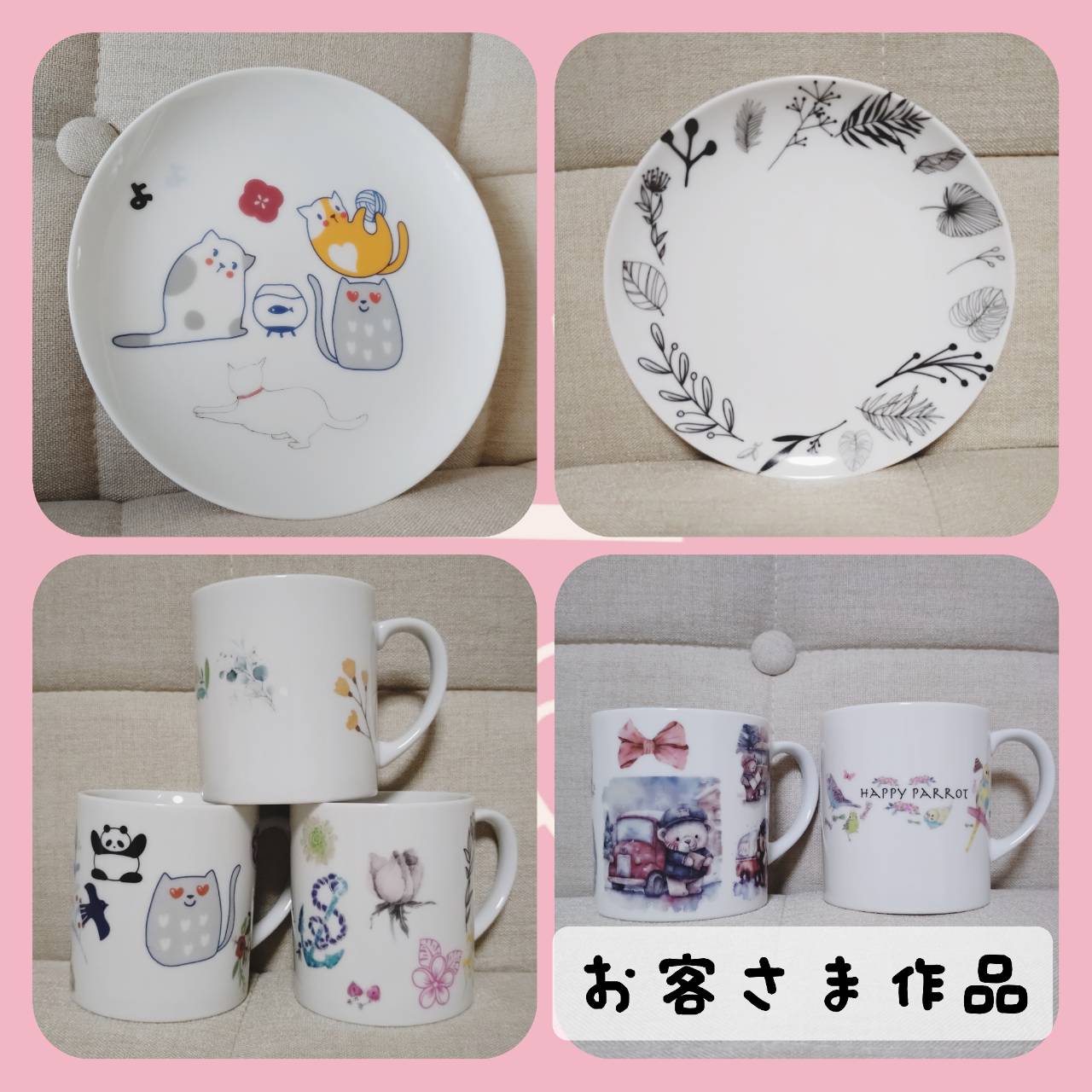 ポーセラーツ食器、雑貨のお店です。 ポーセラーツでは、好きな絵柄の転写紙(シールの様なもの)を選んで、お皿やマグカップをデザインできます。 簡単なので、お子さまからご年配の方までお楽しみいただけます!