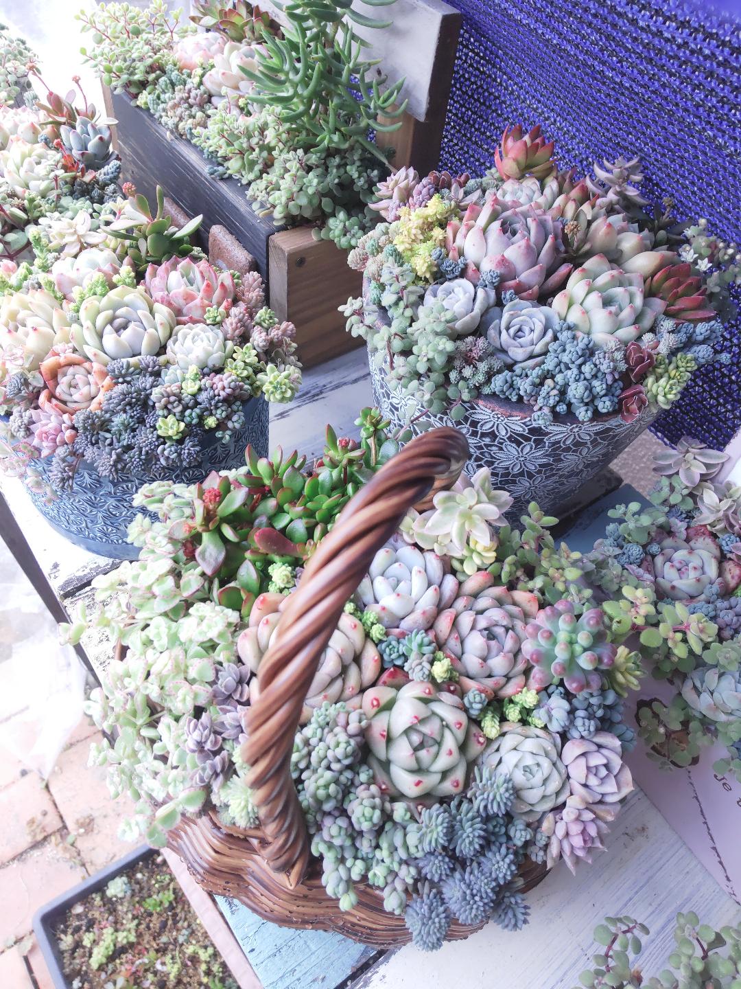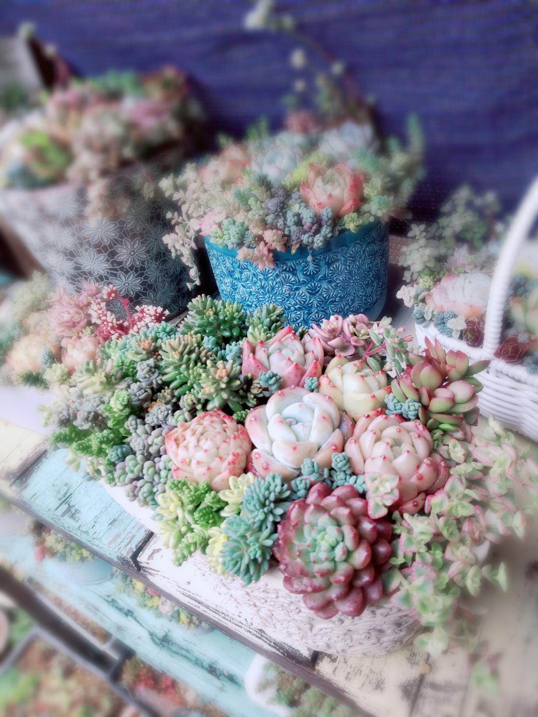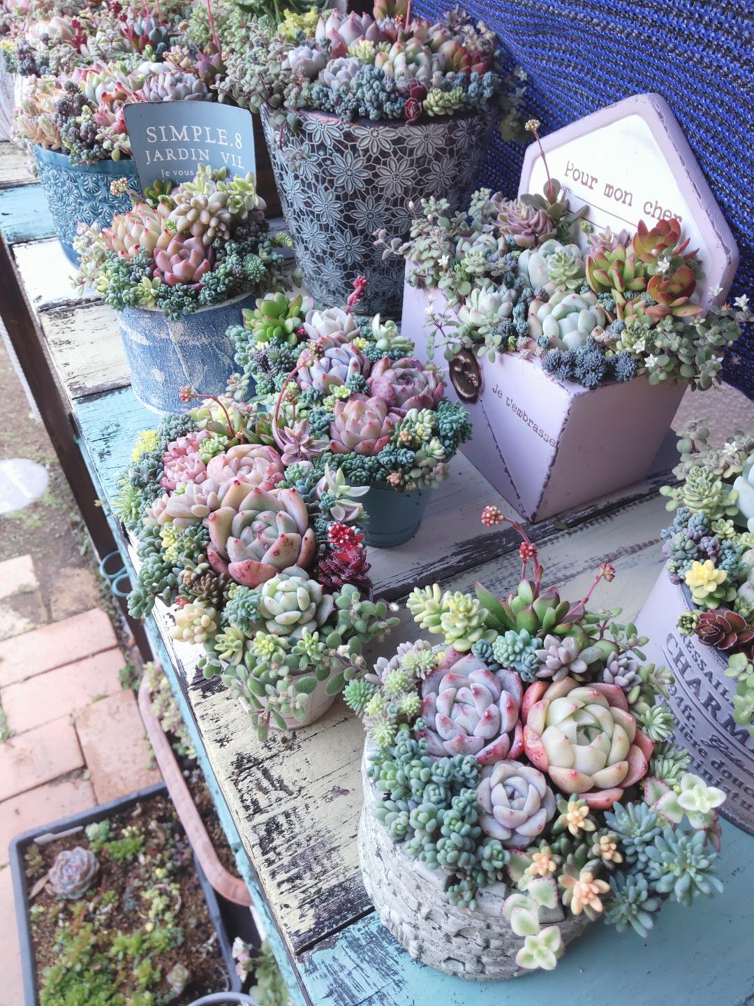 自宅の庭で多肉の寄せ植えを楽しんでます八代市内で寄せ植えのworkshopも時々開いてますので、遊びに来て下さい☆彡