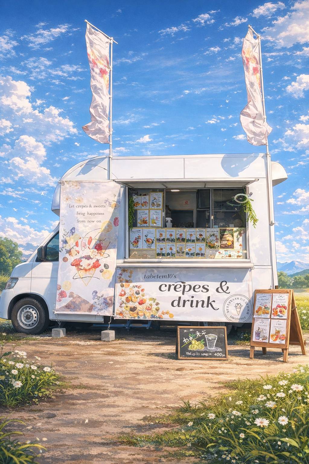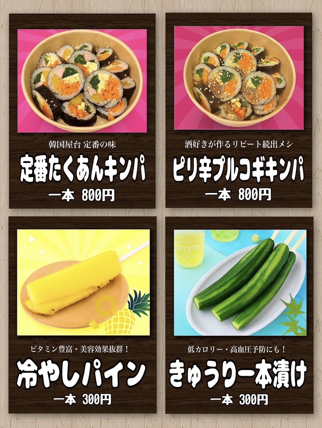 クロッフル(3日のみ)、かき氷、韓国チキン、チュロス、ふるふるポテト、カップアイス、ドリンク類