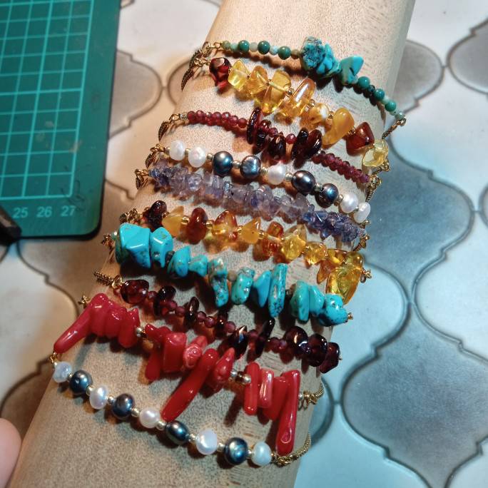 金属と天然石でアクセサリーをつくっています。