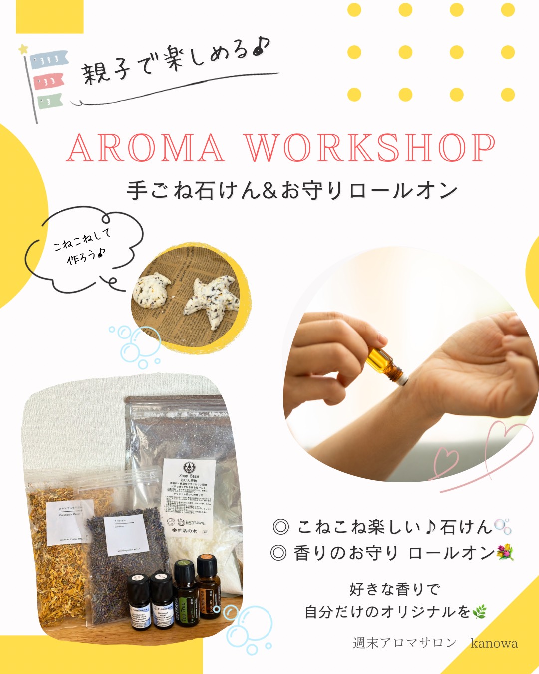 マルシェでは、親子で楽しめるアロマワークショップを開催します♪