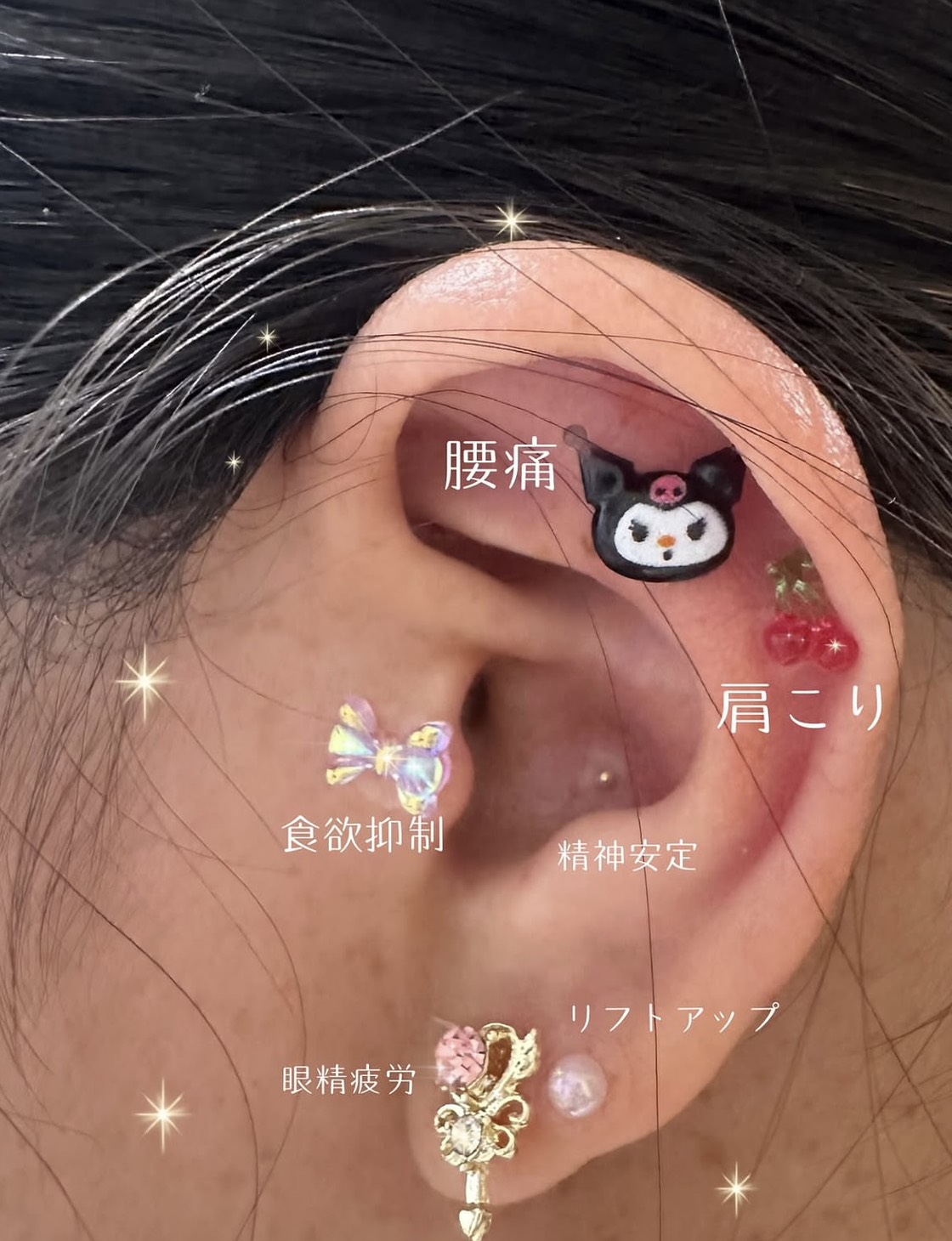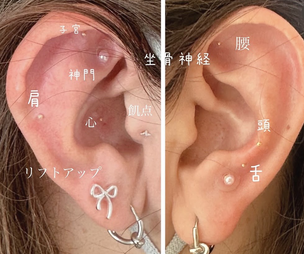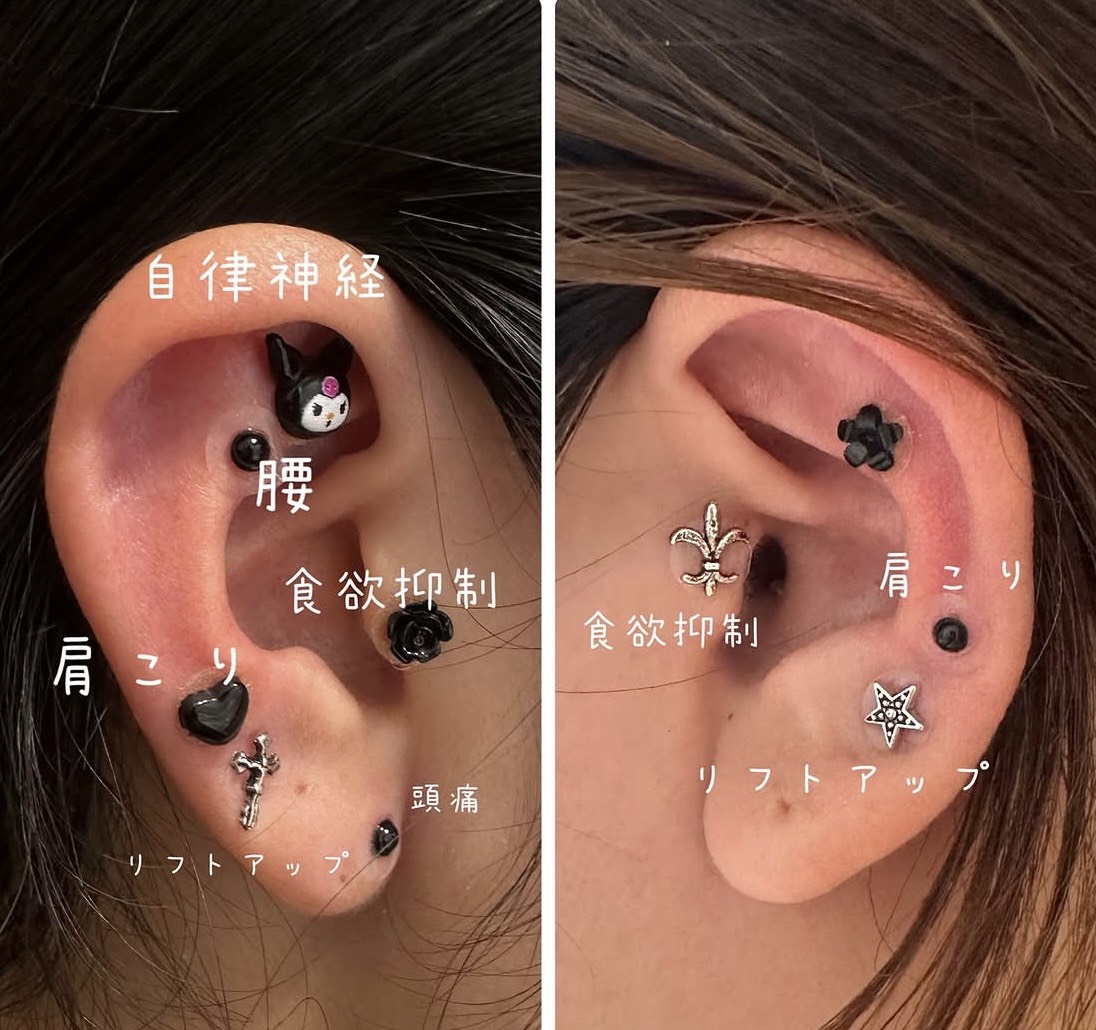 耳にあるツボに装飾付きシールを貼り、ピアス感覚でおしゃれを楽しみながらツボを継続的に刺激する美容施術を、ご来店られたお客様に行います。