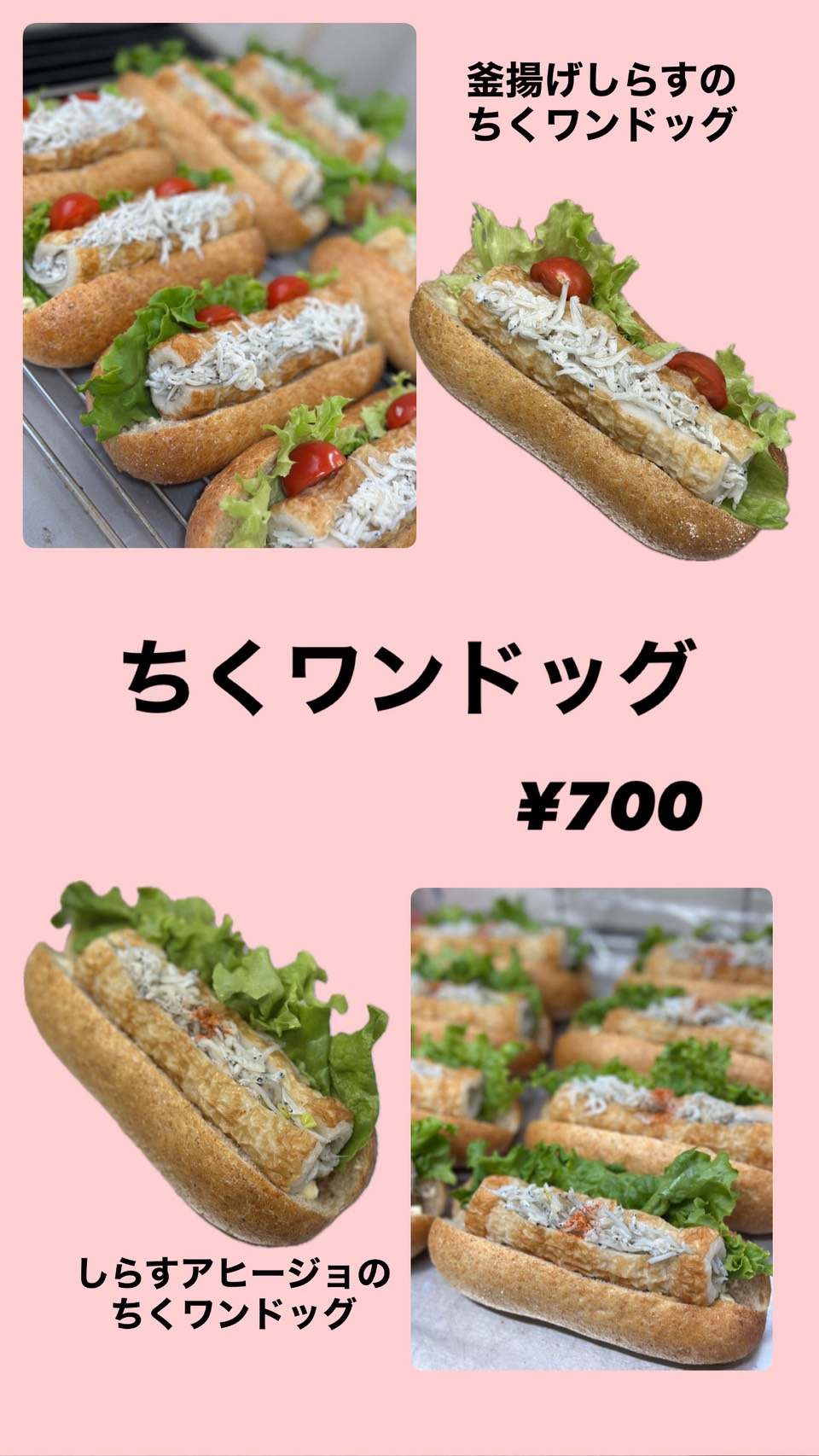 しらす丼、パスタ、ちくワンドッグ、フルーツサイダー等