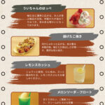 削りいちご、スムージー、いちご飴、ポテト
